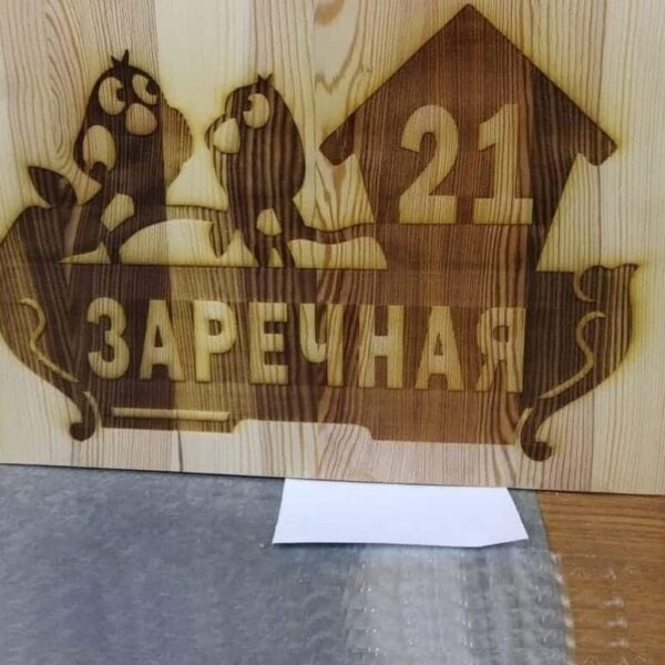 Intra απο ξύλο plywood 3mm-4mm πάχος – Ξύλινη Ξύλινη Πλακέτα Διεύθυνσης Σπιτιού με Λίμα Δύο Κουκουβάγιες 10×10 cm INTRAVECTRY-MY561409