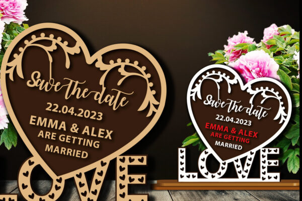 Intra απο ξύλο plywood 3mm-4mm πάχος – Ξύλινη πινακίδα αγάπης Save the Date Δίασταση 20×20 cm INTRAFABR-68445498