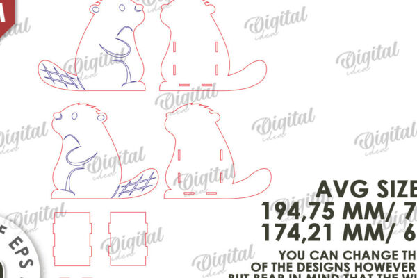 Intra απο ξύλο plywood 3mm-4mm πάχος – Ξύλινη χαριτωμένη θήκη για στυλό Beaver Cut Laser Δίασταση 20×20 cm INTRAFABR-112435753