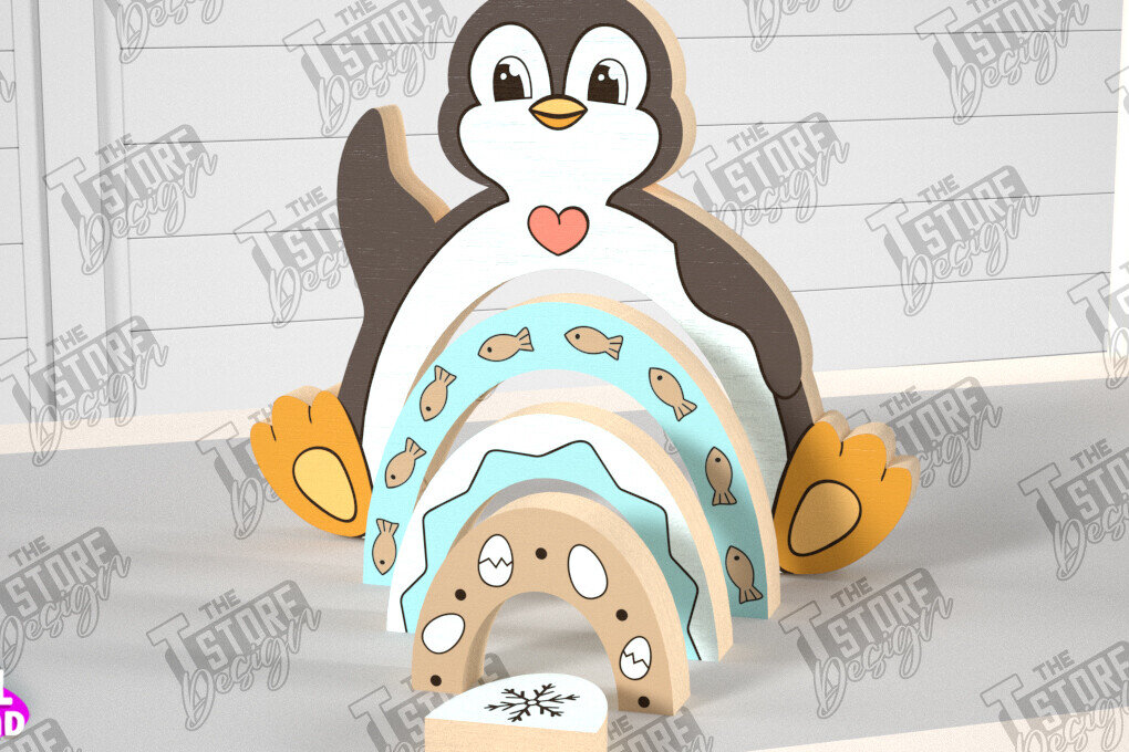 Intra απο ξύλο plywood 3mm-4mm πάχος – Ξύλινος Πιγκουίνος Φωλιάσματος | Παιχνίδι μωρού | CNC Δίασταση 20×20 cm INTRAFABR-101169384