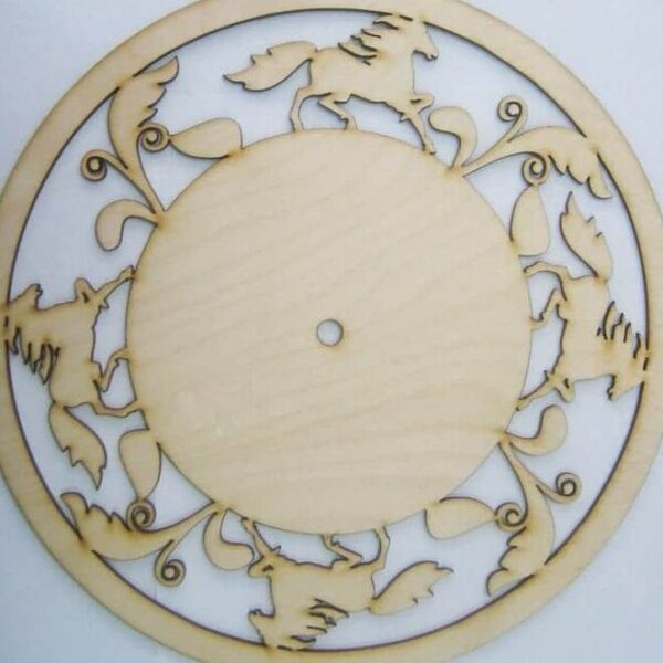Intra απο ξύλο plywood 3mm-4mm πάχος – Ξύλινο ξύλο Four Running Horses Σχεδιασμός στρογγυλού ρολογιού τοίχου 15×20 cm INTRAVECTRY-MY557284