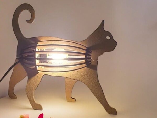 Intra απο ξύλο plywood 3mm-4mm πάχος – Ξύλινο επιτραπέζιο φωτιστικό σε σχήμα γάτας 15×20 cm INTRAVECTRY-MY544425