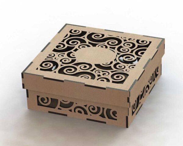 Intra απο ξύλο plywood 3mm-4mm πάχος – Ξύλινο κουτί με μοτίβο στροβιλισμού με ξύλο καπακιού 30×30 cm INTRAVECTRY-MY546046