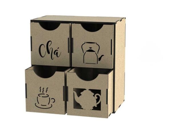 Intra απο ξύλο plywood 3mm-4mm πάχος – Ξύλινο κουτί τσαγιού τεσσάρων συρταριών 20×25 cm INTRAVECTRY-MY554107