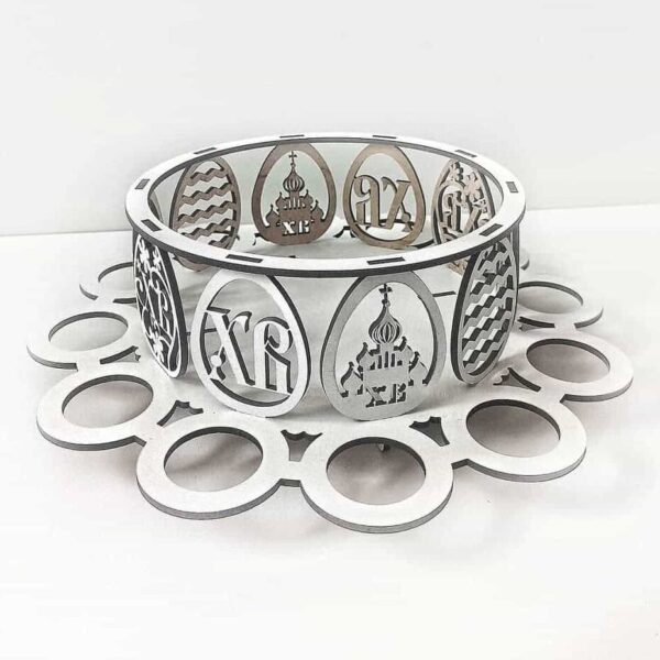 Intra απο ξύλο plywood 3mm-4mm πάχος – Ξύλινο κυκλικό πασχαλινό καλάθι με λίμα αυγοθήκης πολλαπλών αυλακώσεων 40×45 cm INTRAVECTRY-MY547968