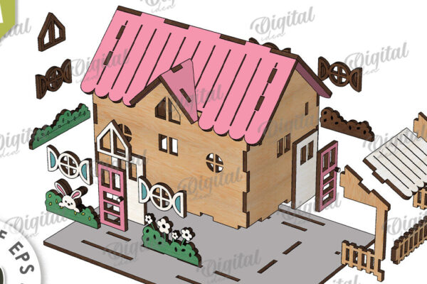 Intra απο ξύλο plywood 3mm-4mm πάχος – Ξύλινο Πασχαλινό Σπίτι με λέιζερ. 3D Πάσχα Δίασταση 20×20 cm INTRAFABR-116176525