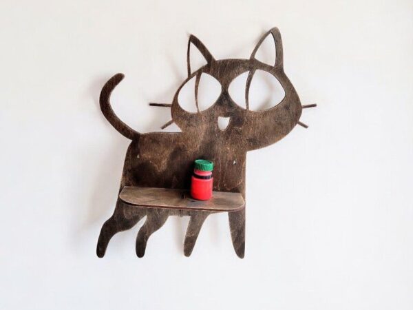 Intra απο ξύλο plywood 3mm-4mm πάχος – Ξύλινο ράφι τοίχου σε σχήμα γάτας 30×30 cm INTRAVECTRY-MY546399