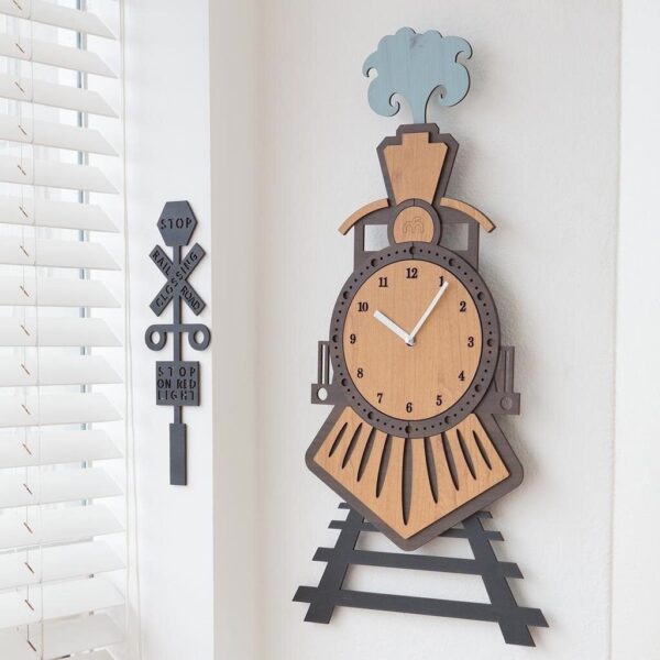 Intra απο ξύλο plywood 3mm-4mm πάχος – Ξύλινο ρολόι τοίχου τρένου Διακόσμηση τοίχου παιδικού δωματίου Δίασταση 30×30 cm Intraeaxys-91jd4zp1