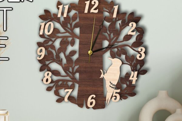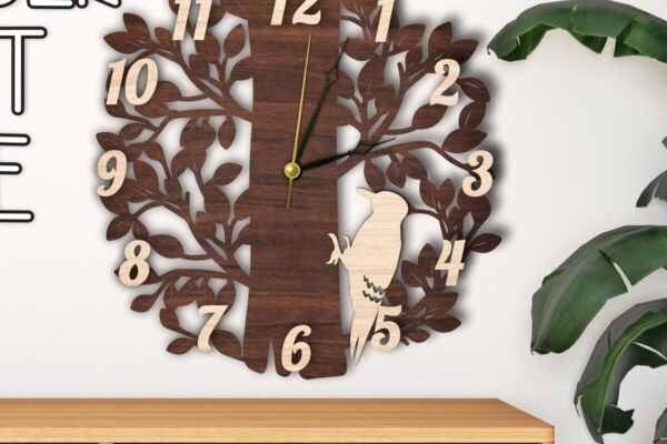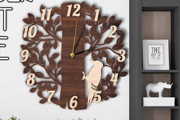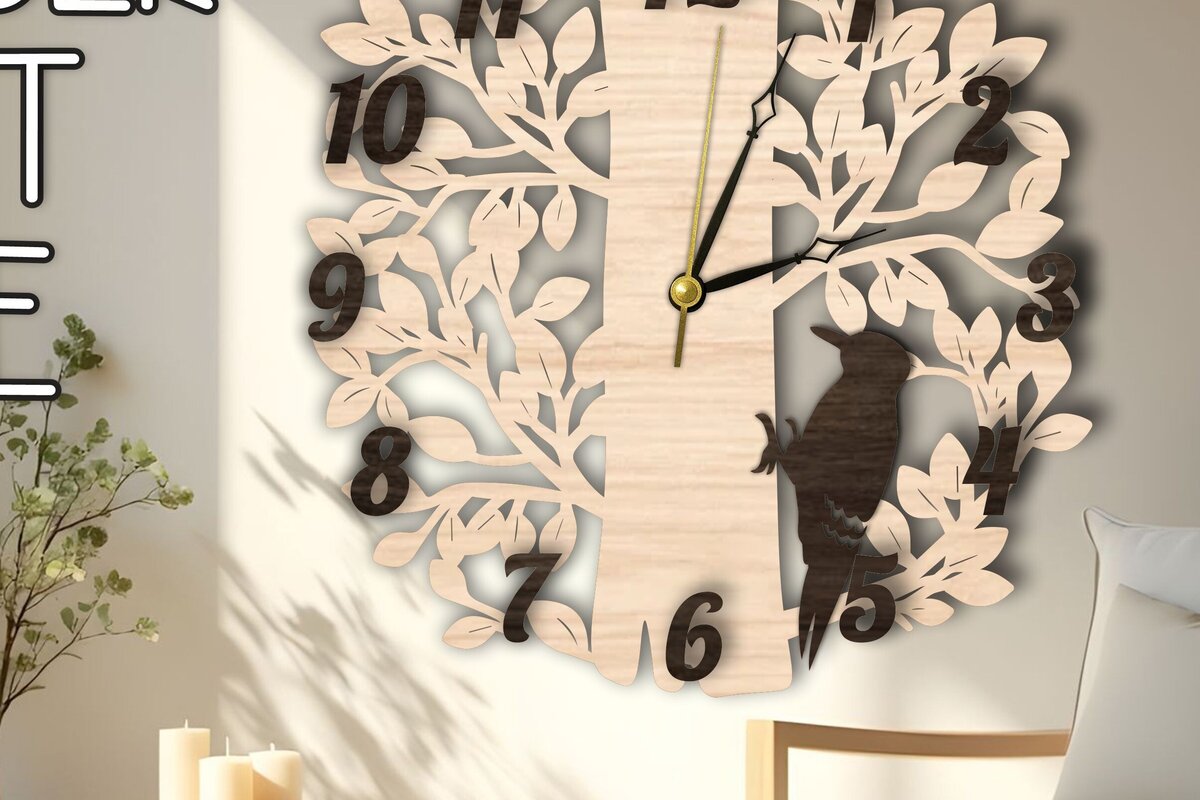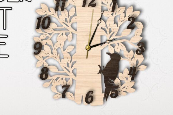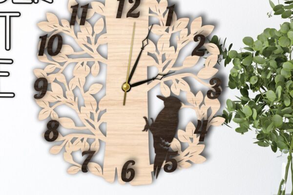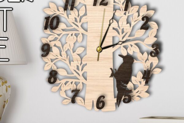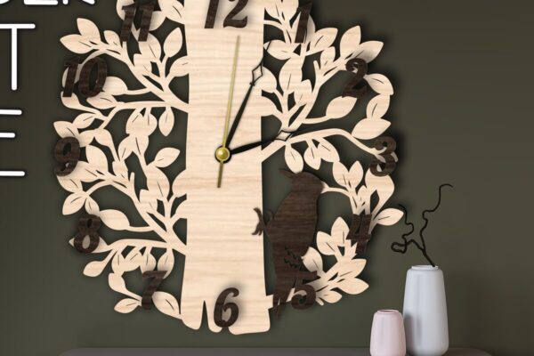 Intra απο ξύλο plywood 3mm-4mm πάχος – Ξύλινο ρολόι τοίχου | Πουλιά στο δέντρο Δίασταση 40×30 cm INTRAFABR-119200811