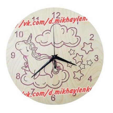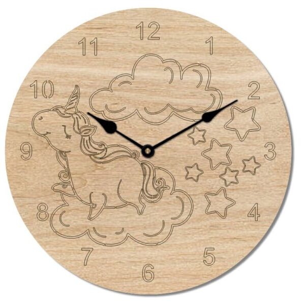 Intra απο ξύλο plywood 3mm-4mm πάχος – Ξύλινο ρολόι τοίχου με θέμα Unicorn 20×20 cm INTRAVECTRY-MY560920
