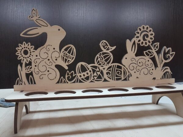 Intra απο ξύλο plywood 3mm-4mm πάχος – Ξύλινο σταντ πασχαλινών αυγών με λίμα λουλούδια και κουνέλια 12×15 cm INTRAVECTRY-MY552468
