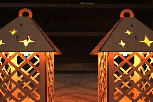Intra απο ξύλο plywood 3mm-4mm πάχος – Ξύλινο Φανάρι, Νυχτερινό φωτιστικό δαπέδου κομμένο με λέιζερ Δίασταση 20×20 cm INTRAFABR-43538161