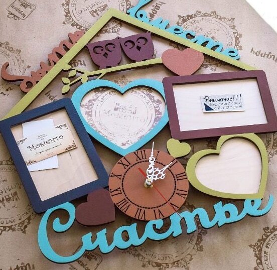 Intra απο ξύλο plywood 3mm-4mm πάχος – Οικογενειακή κορνίζα με ρολόι 20×25 cm INTRAVECTRY-MY551930