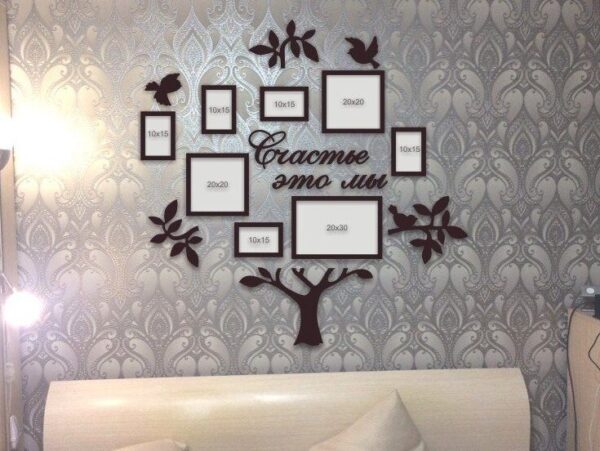 Intra απο ξύλο plywood 3mm-4mm πάχος – Οικογενειακό δέντρο με 7 κορνίζες 30×35 cm INTRAVECTRY-MY557076