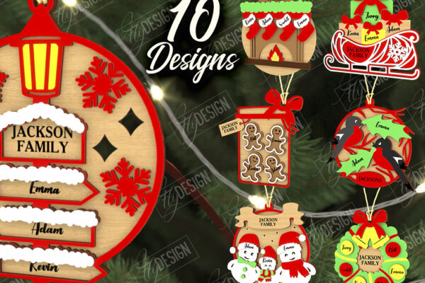 Intra απο ξύλο plywood Χρώμα wenge 3mm-4mm πάχος – Οικογενειακό Πακέτο Χριστουγεννιάτικων Στολίδι | CNC Δίασταση 6×6 cm INTRAFABR-119369436