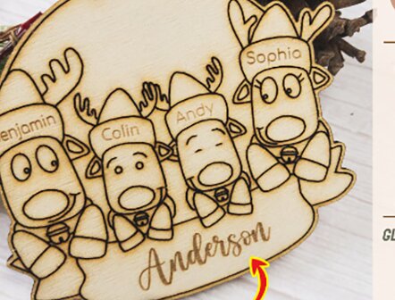 Intra απο ξύλο plywood 3mm-4mm πάχος – Οικογενειακό Στολίδι Τάρανδος Δίασταση 20×20 cm INTRAFABR-81243542