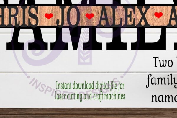 Οικογενειακό Σχεδιασμός Ονόματος Σήμα Laser Πρόκειται για ψηφιακό σχεδίου, ιδανικό για κοπή με ή plotter. Κατασκευασμένο απο Ξύλο από plywood [3mm ή 4mm], κομμένο με ακρίβεια στην βιοτεχνία Intrahome . Το φυσικό ξύλο προσφέρει μια κομψή, αυθεντική υφή και μπορεί εύκολα να βαφτεί ή να διακοσμηθεί σύμφωνα με το προσωπικό σας γούστο. Ελληνική παραγωγή – Κατασκευάζεται στην Ελλάδα με προσοχή στη λεπτομέρεια και υψηλές προδιαγραφές ποιότητας. ✔️ Υλικό: Plywood υψηλής ποιότητας ✔️ Διατίθεται σε πάχος 3mm ή 4mm ✔️ Ελαφρύ, ανθεκτικό και εύκολο στη χρήση ✔️ Ιδανικό για βάψιμο, χάραξη, κόλληση και χειροτεχνίες ✔️ Κατάλληλο για μπομπονιέρες, διακόσμηση, δώρα και DIY projects ✅ Εγγύηση 2 ετών – Σε περίπτωση σπασίματος, η αντικατάσταση γίνεται άμεσα, χάρη στην τοπική ελληνική παραγωγή μας. Ιδανικό για δημιουργικούς ανθρώπους που αγαπούν το DIY. Μπορεί να γίνει ξεχωριστό δώρο με προσωπικό χαρακτήρα. Φέρνει “χειροποίητη” αισθητική στη διακόσμηση. -files- Ελληνική χειροποίητη παραγωγή → στηρίζετε τοπικούς δημιουργούς. Κάθε κομμάτι έχει τη δική του φυσική ξύλινη υφή (μοναδικότητα). Δυνατότητα ειδικής παραγγελίας (άλλα μεγέθη / σχήματα). Άμεση ανταπόκριση & υποστήριξη. Εγγύηση αντικατάστασης (ήδη το έχεις). Μπορεί να μετατραπεί σε προσωποποιημένο αντικείμενο με χάραξη ή χρώμα. -files– Μη τοξικό υλικό → ασφαλές για παιδιά (με επίβλεψη). Ελαφρύ και εύκολο στη μεταφορά. Συσκευάζεται με προστασία για να φτάνει πάντα άθικτο. -files–files- Ιδανικό για event planners, καταστήματα ειδών δώρου, κατασκευαστές . Διατίθεται σε χονδρική με ειδικές τιμές & εκπτώσεις σε ποσότητα. Ανοιχτές Αποχρώσεις