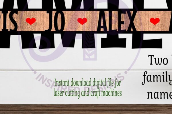 Οικογενειακό Σχεδιασμός Ονόματος Σήμα Laser Πρόκειται για ψηφιακό σχεδίου, ιδανικό για κοπή με ή plotter. Κατασκευασμένο απο Ξύλο από plywood [3mm ή 4mm], κομμένο με ακρίβεια στην βιοτεχνία Intrahome . Το φυσικό ξύλο προσφέρει μια κομψή, αυθεντική υφή και μπορεί εύκολα να βαφτεί ή να διακοσμηθεί σύμφωνα με το προσωπικό σας γούστο. Ελληνική παραγωγή – Κατασκευάζεται στην Ελλάδα με προσοχή στη λεπτομέρεια και υψηλές προδιαγραφές ποιότητας. ✔️ Υλικό: Plywood υψηλής ποιότητας ✔️ Διατίθεται σε πάχος 3mm ή 4mm ✔️ Ελαφρύ, ανθεκτικό και εύκολο στη χρήση ✔️ Ιδανικό για βάψιμο, χάραξη, κόλληση και χειροτεχνίες ✔️ Κατάλληλο για μπομπονιέρες, διακόσμηση, δώρα και DIY projects ✅ Εγγύηση 2 ετών – Σε περίπτωση σπασίματος, η αντικατάσταση γίνεται άμεσα, χάρη στην τοπική ελληνική παραγωγή μας. Ιδανικό για δημιουργικούς ανθρώπους που αγαπούν το DIY. Μπορεί να γίνει ξεχωριστό δώρο με προσωπικό χαρακτήρα. Φέρνει “χειροποίητη” αισθητική στη διακόσμηση. -files- Ελληνική χειροποίητη παραγωγή → στηρίζετε τοπικούς δημιουργούς. Κάθε κομμάτι έχει τη δική του φυσική ξύλινη υφή (μοναδικότητα). Δυνατότητα ειδικής παραγγελίας (άλλα μεγέθη / σχήματα). Άμεση ανταπόκριση & υποστήριξη. Εγγύηση αντικατάστασης (ήδη το έχεις). Μπορεί να μετατραπεί σε προσωποποιημένο αντικείμενο με χάραξη ή χρώμα. -files– Μη τοξικό υλικό → ασφαλές για παιδιά (με επίβλεψη). Ελαφρύ και εύκολο στη μεταφορά. Συσκευάζεται με προστασία για να φτάνει πάντα άθικτο. -files–files- Ιδανικό για event planners, καταστήματα ειδών δώρου, κατασκευαστές . Διατίθεται σε χονδρική με ειδικές τιμές & εκπτώσεις σε ποσότητα. Ανοιχτές Αποχρώσεις