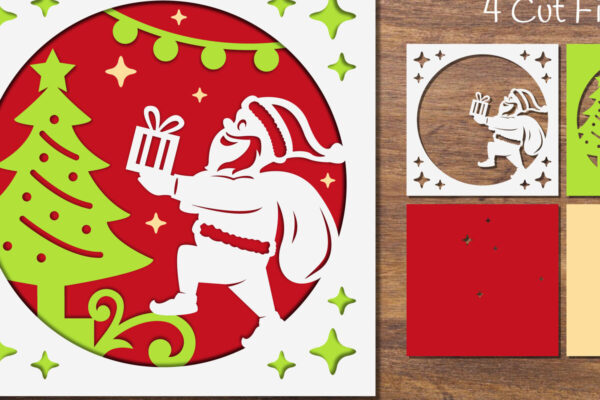 Intra απο ξύλο plywood 3mm-4mm πάχος – Ο Άγιος Βασίλης και το κουτί δώρου με στρώσεις χαρτοκόπτη Δίασταση 20×20 cm INTRAFABR-85898943
