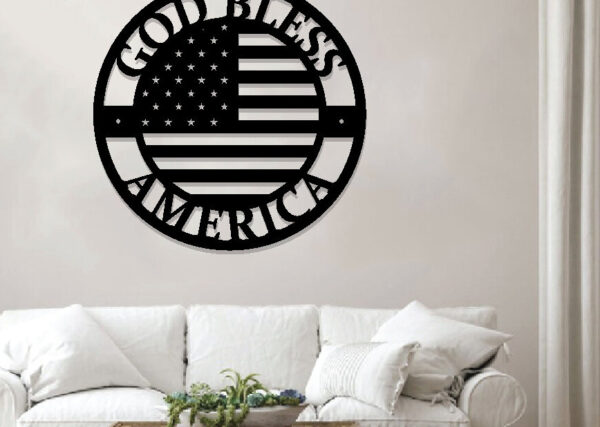 Intra απο ξύλο plywood 3mm-4mm πάχος – Ο Θεός να ευλογεί την Αμερική, πινακίδα αμερικανικής σημαίας Δίασταση 3600×3600 cm INTRAFABR-99390348