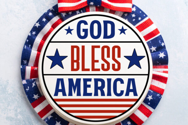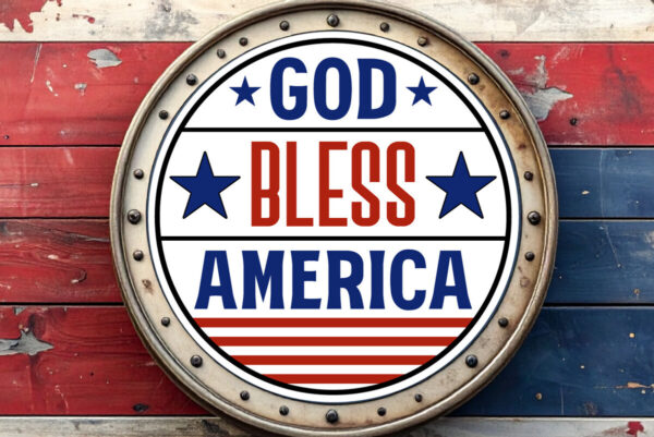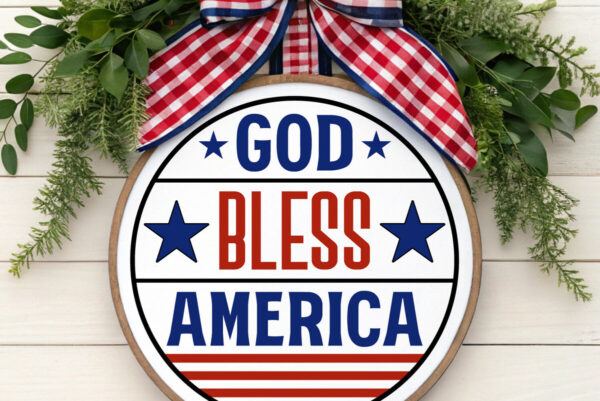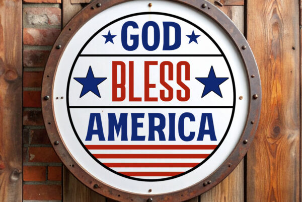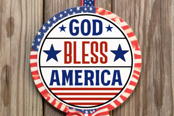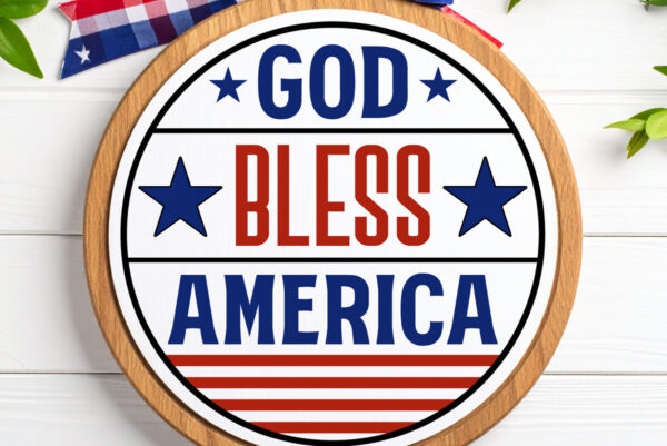 Intra απο ξύλο plywood 3mm-4mm πάχος – Ο Θεός να ευλογεί την Αμερική Στρογγυλή πινακίδα με λέιζερ Δίασταση 4×4 cm INTRAFABR-123524240