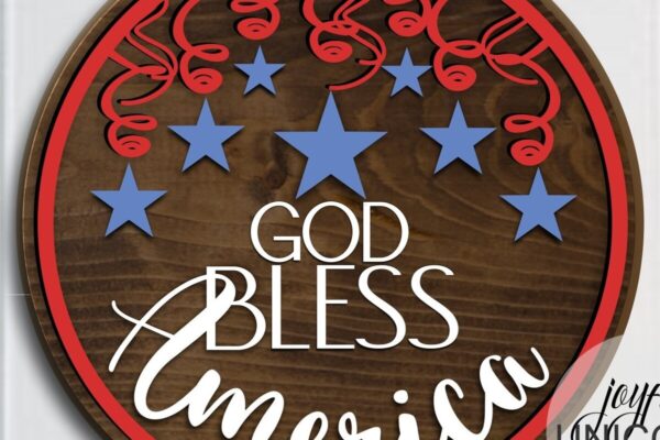 Intra απο ξύλο plywood 3mm-4mm πάχος – Ο Θεός να ευλογεί την Αμερική Γύρος καλωσορίσματος Δίασταση 20×20 cm INTRAFABR-68370785