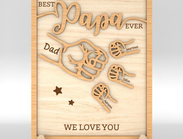 Ο μπαμπάς και το παιδί με τα χέρια με γροθιά χτύπημα Πρόκειται για ψηφιακό σχεδίου, ιδανικό για κοπή με ή plotter. Κατασκευασμένο απο Ξύλο από plywood [3mm ή 4mm], κομμένο με ακρίβεια στην βιοτεχνία Intrahome . Το φυσικό ξύλο προσφέρει μια κομψή, αυθεντική υφή και μπορεί εύκολα να βαφτεί ή να διακοσμηθεί σύμφωνα με το προσωπικό σας γούστο. Ελληνική παραγωγή – Κατασκευάζεται στην Ελλάδα με προσοχή στη λεπτομέρεια και υψηλές προδιαγραφές ποιότητας. ✔️ Υλικό: Plywood υψηλής ποιότητας ✔️ Διατίθεται σε πάχος 3mm ή 4mm ✔️ Ελαφρύ, ανθεκτικό και εύκολο στη χρήση ✔️ Ιδανικό για βάψιμο, χάραξη, κόλληση και χειροτεχνίες ✔️ Κατάλληλο για μπομπονιέρες, διακόσμηση, δώρα και DIY projects ✅ Εγγύηση 2 ετών – Σε περίπτωση σπασίματος, η αντικατάσταση γίνεται άμεσα, χάρη στην τοπική ελληνική παραγωγή μας. Ιδανικό για δημιουργικούς ανθρώπους που αγαπούν το DIY. Μπορεί να γίνει ξεχωριστό δώρο με προσωπικό χαρακτήρα. Φέρνει “χειροποίητη” αισθητική στη διακόσμηση. -files- Ελληνική χειροποίητη παραγωγή → στηρίζετε τοπικούς δημιουργούς. Κάθε κομμάτι έχει τη δική του φυσική ξύλινη υφή (μοναδικότητα). Δυνατότητα ειδικής παραγγελίας (άλλα μεγέθη / σχήματα). Άμεση ανταπόκριση & υποστήριξη. Εγγύηση αντικατάστασης (ήδη το έχεις). Μπορεί να μετατραπεί σε προσωποποιημένο αντικείμενο με χάραξη ή χρώμα. -files– Μη τοξικό υλικό → ασφαλές για παιδιά (με επίβλεψη). Ελαφρύ και εύκολο στη μεταφορά. Συσκευάζεται με προστασία για να φτάνει πάντα άθικτο. -files–files- Ιδανικό για event planners, καταστήματα ειδών δώρου, κατασκευαστές . Διατίθεται σε χονδρική με ειδικές τιμές & εκπτώσεις σε ποσότητα. Ανοιχτές Αποχρώσεις