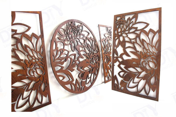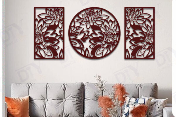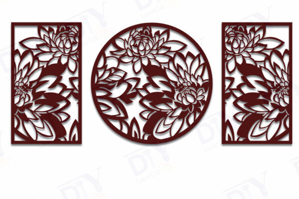 Intra απο ξύλο plywood 3mm-4mm πάχος – Πάνελ κοπής με λέιζερ 3 τεμαχίων με Peony Wall Art Δίασταση 40×30 cm INTRAFABR-120648610