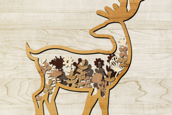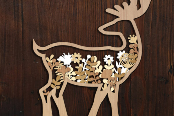 Intra απο ξύλο plywood 3mm-4mm πάχος – Πάνελ τοίχου με λουλουδάτα ελάφια Δίασταση 12×8 cm INTRAFABR-104438247