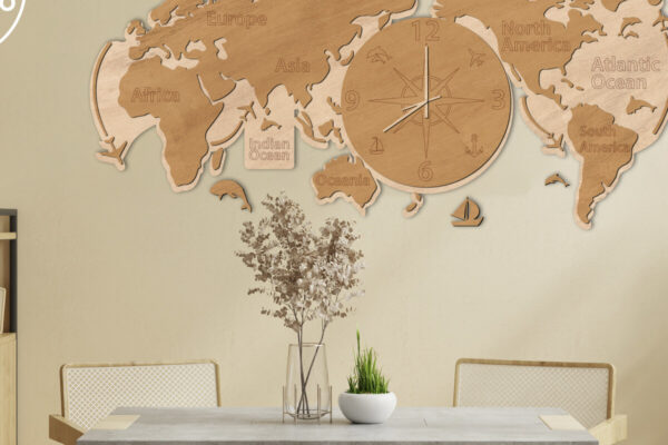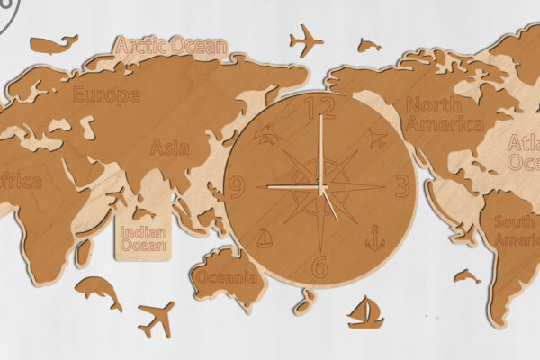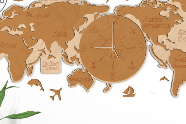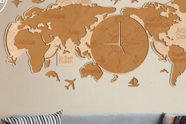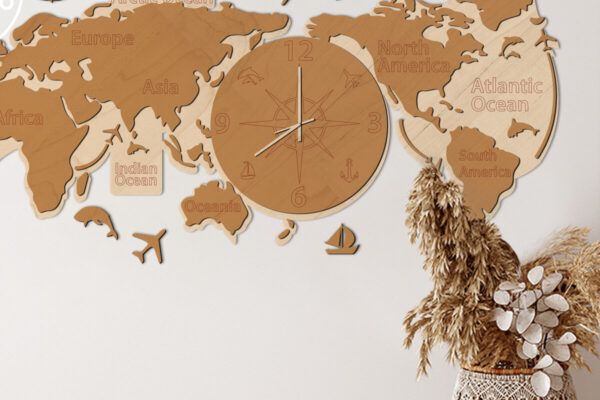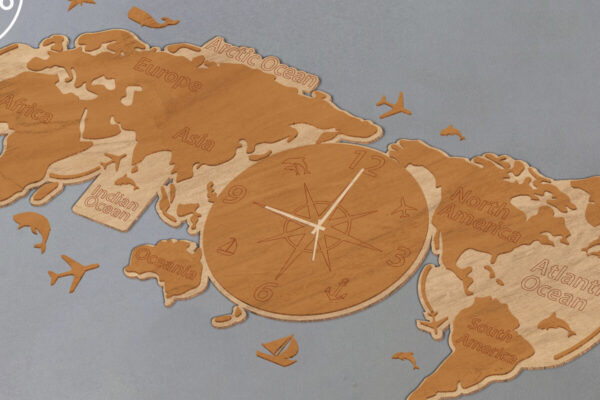 Intra απο ξύλο plywood Χρώμα wenge 3mm-4mm πάχος – Παγκόσμιος χάρτης ρολογιού Ξύλινη τέχνη τοίχων Δίασταση 80×38 cm INTRAFABR-107013345