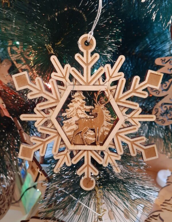 Intra απο ξύλο plywood 3mm-4mm πάχος – Παιχνίδια Χριστουγεννιάτικου Δέντρου από ξύλινα ελάφια Snowflakes Δίασταση 30×30 cm Intraeaxys-yon0yjg7