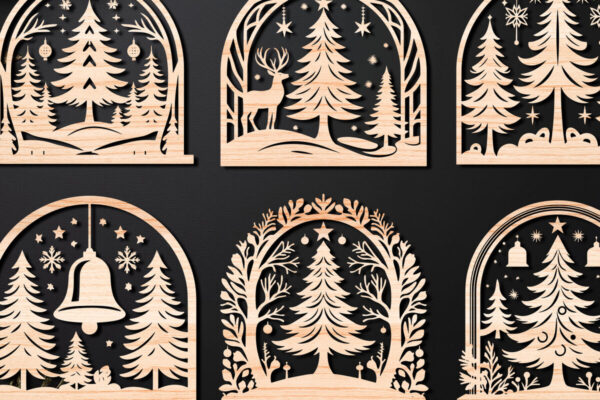 Intra απο ξύλο plywood 3mm-4mm πάχος Πακέτα αποκοπής λέιζερ Χριστουγεννιάτικων σκηνών Δίασταση 15×15 cm INTRAFABR-109359458