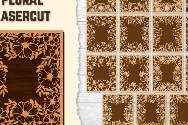 Intra απο ξύλο plywood Χρώμα wenge 3mm-4mm πάχος – Πακέτα φωτογραφιών Floral Lasercut BNDLES Δίασταση 20×20 cm INTRAFABR-39686949
