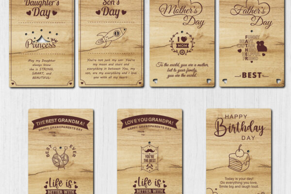 Πακέτο ευχετήριων καρτών Πρόκειται για ψηφιακό σχεδίου, ιδανικό για κοπή με ή plotter. Κατασκευασμένο απο Ξύλο από plywood [3mm ή 4mm], κομμένο με ακρίβεια στην βιοτεχνία Intrahome . Το φυσικό ξύλο προσφέρει μια κομψή, αυθεντική υφή και μπορεί εύκολα να βαφτεί ή να διακοσμηθεί σύμφωνα με το προσωπικό σας γούστο. Ελληνική παραγωγή – Κατασκευάζεται στην Ελλάδα με προσοχή στη λεπτομέρεια και υψηλές προδιαγραφές ποιότητας. ✔️ Υλικό: Plywood υψηλής ποιότητας ✔️ Διατίθεται σε πάχος 3mm ή 4mm ✔️ Ελαφρύ, ανθεκτικό και εύκολο στη χρήση ✔️ Ιδανικό για βάψιμο, χάραξη, κόλληση και χειροτεχνίες ✔️ Κατάλληλο για μπομπονιέρες, διακόσμηση, δώρα και DIY projects ✅ Εγγύηση 2 ετών – Σε περίπτωση σπασίματος, η αντικατάσταση γίνεται άμεσα, χάρη στην τοπική ελληνική παραγωγή μας. Ιδανικό για δημιουργικούς ανθρώπους που αγαπούν το DIY. Μπορεί να γίνει ξεχωριστό δώρο με προσωπικό χαρακτήρα. Φέρνει “χειροποίητη” αισθητική στη διακόσμηση. -files- Ελληνική χειροποίητη παραγωγή → στηρίζετε τοπικούς δημιουργούς. Κάθε κομμάτι έχει τη δική του φυσική ξύλινη υφή (μοναδικότητα). Δυνατότητα ειδικής παραγγελίας (άλλα μεγέθη / σχήματα). Άμεση ανταπόκριση & υποστήριξη. Εγγύηση αντικατάστασης (ήδη το έχεις). Μπορεί να μετατραπεί σε προσωποποιημένο αντικείμενο με χάραξη ή χρώμα. -files– Μη τοξικό υλικό → ασφαλές για παιδιά (με επίβλεψη). Ελαφρύ και εύκολο στη μεταφορά. Συσκευάζεται με προστασία για να φτάνει πάντα άθικτο. -files–files- Ιδανικό για event planners, καταστήματα ειδών δώρου, κατασκευαστές . Διατίθεται σε χονδρική με ειδικές τιμές & εκπτώσεις σε ποσότητα. Ανοιχτές Αποχρώσεις