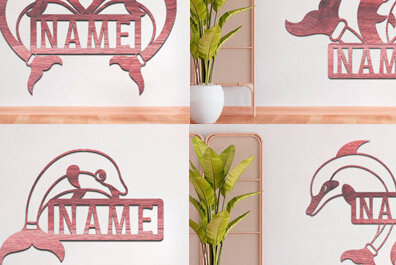 Intra απο ξύλο plywood 3mm-4mm πάχος – Πακέτο κοπής λέιζερ Sign Name Dolphin Δίασταση 30×20 cm INTRAFABR-74990805