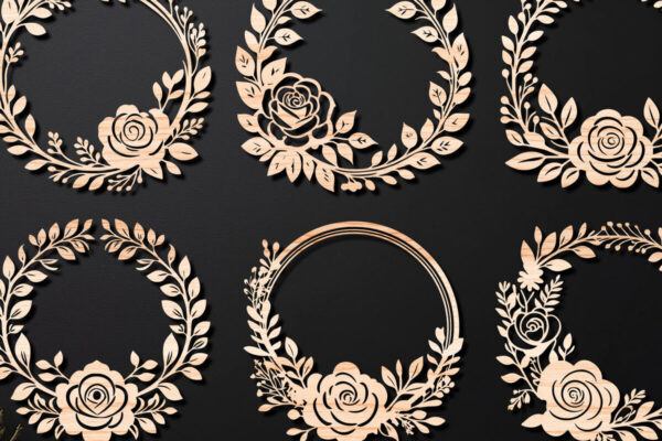Intra απο ξύλο plywood Χρώμα wenge 3mm-4mm πάχος – Πακέτο κοπής λέιζερ Floral στεφάνι 10 Δίασταση 20×20 cm INTRAFABR-25687906