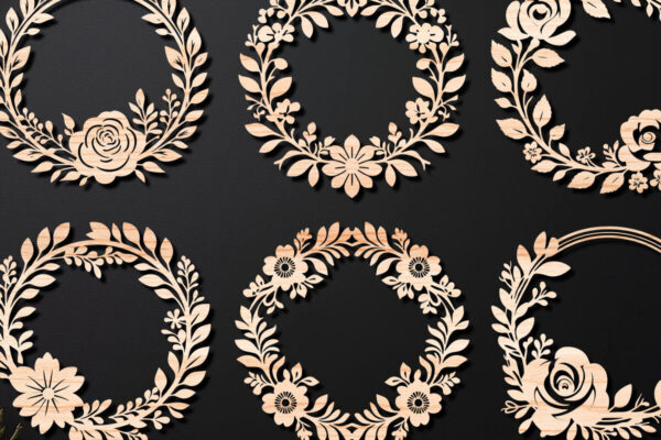 Intra απο ξύλο plywood 3mm-4mm πάχος – Πακέτο κοπής με λέιζερ Floral Wreath 08 Δίασταση 20×20 cm INTRAFABR-112432030