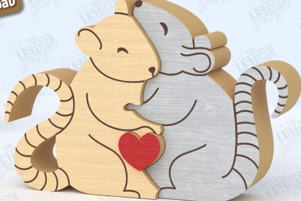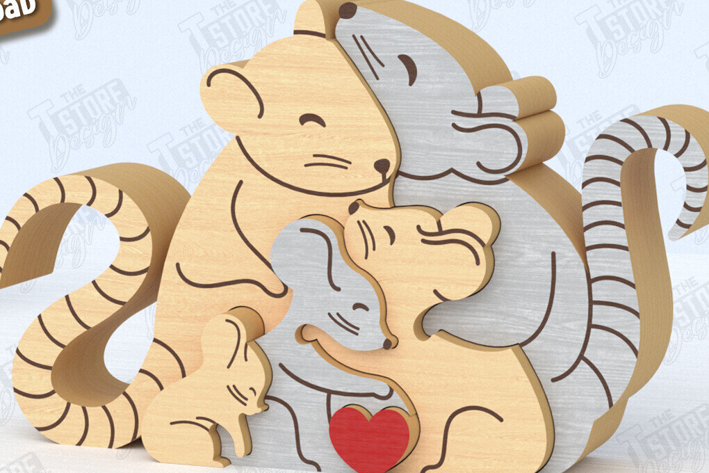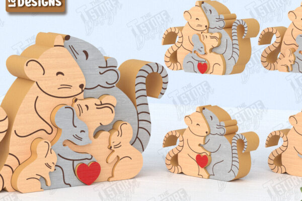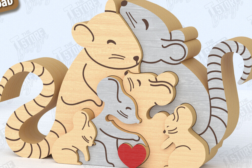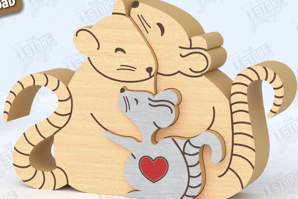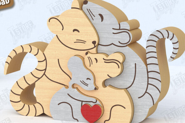 Intra απο ξύλο plywood 3mm-4mm πάχος – Πακέτο κοπής με λέιζερ παζλ Rats Family | CNC Δίασταση 20×20 cm INTRAFABR-119955341