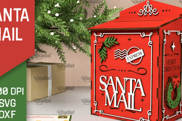 Intra απο ξύλο plywood 3mm-4mm πάχος – Πακέτο κοπής με λέιζερ Santa Mail Boxes Δίασταση 20×20 cm INTRAFABR-106599370