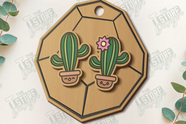 Intra απο ξύλο plywood 3mm-4mm πάχος – Πακέτο κοπής με λέιζερ Succulent Stud Earrings Δίασταση 5×5 cm INTRAFABR-120348735