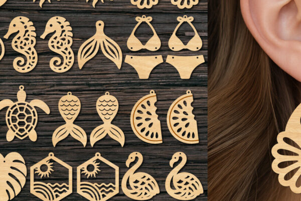 Intra απο ξύλο plywood 3mm-4mm πάχος – Πακέτο κοπής με λέιζερ καλοκαιρινά σκουλαρίκια Δίασταση 5×5 cm INTRAFABR-122210884