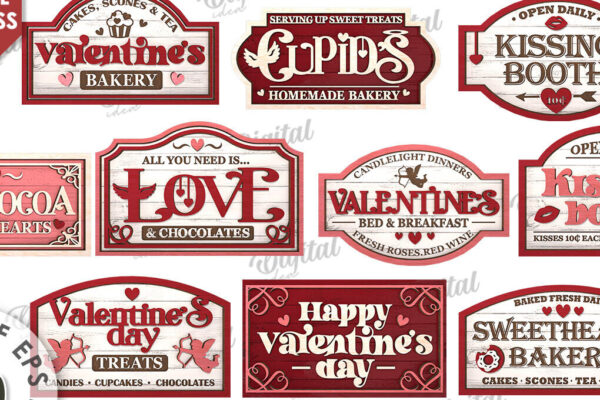 Intra απο ξύλο plywood 3mm-4mm πάχος – Πακέτο κοπής με λέιζερ ρετρό σημαδιών του Αγίου Βαλεντίνου Δίασταση 20×20 cm INTRAFABR-110594548