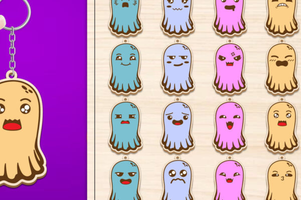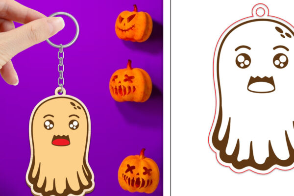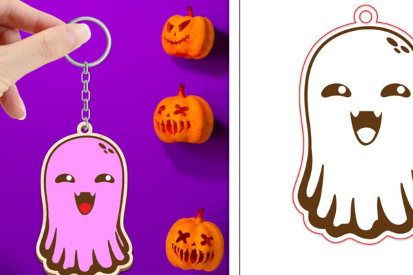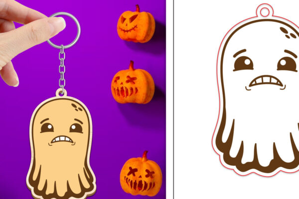 Intra απο ξύλο plywood 3mm-4mm πάχος – Πακέτο κοπής με μπρελόκ Halloween Ghost Δίασταση 4×4 cm INTRAFABR-102621921