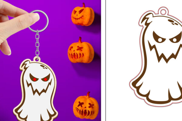 Intra απο ξύλο plywood 3mm-4mm πάχος – Πακέτο κοπής με μπρελόκ Halloween Ghost Δίασταση 4×4 cm INTRAFABR-102519429