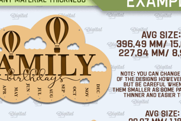 Intra απο ξύλο plywood 3mm-4mm πάχος – Πακέτο λέιζερ ημερολογίου γενεθλίων οικογένειας Δίασταση 20×20 cm INTRAFABR-89833787