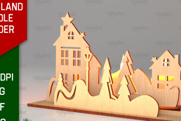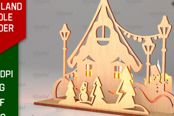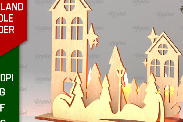 Intra απο ξύλο plywood 3mm-4mm πάχος – Πακέτο λέιζερ Santa Land Candle Holders Δίασταση 20×20 cm INTRAFABR-106950767