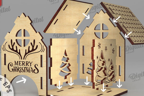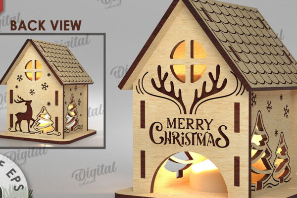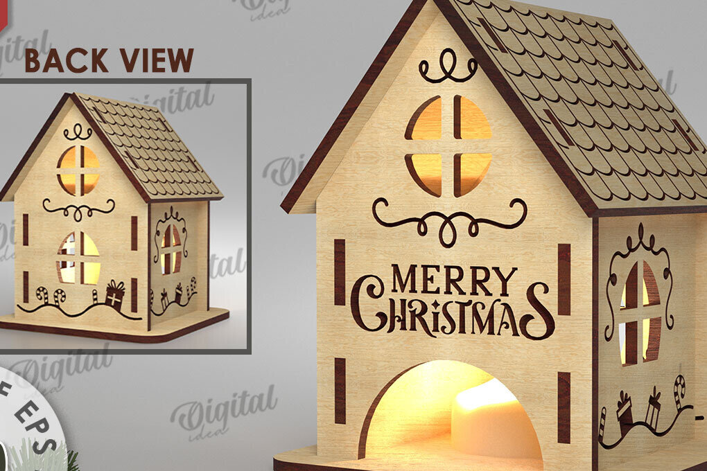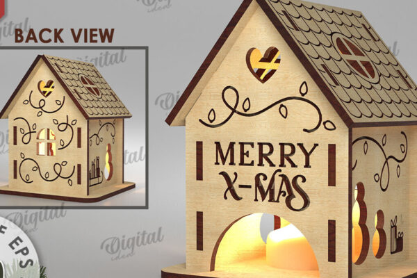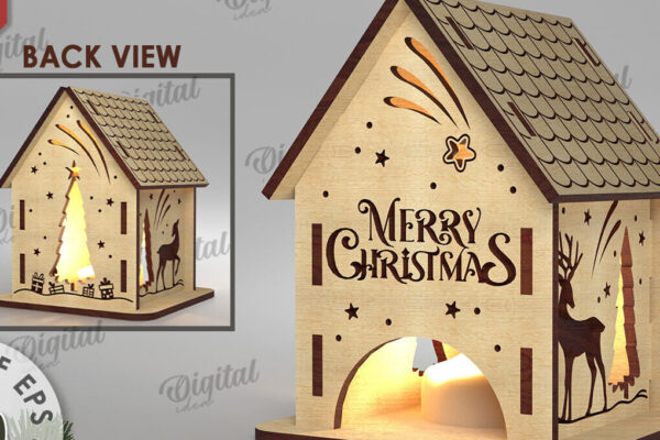Intra απο ξύλο plywood 3mm-4mm πάχος – Πακέτο λέιζερ XMas House Candle Holders Δίασταση 20×20 cm INTRAFABR-108517054