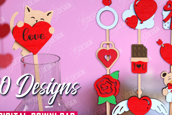 Intra απο ξύλο plywood 3mm-4mm πάχος – Πακέτο με αναδευτήρες ποτών για την ημέρα του Αγίου Βαλεντίνου Δίασταση 20×20 cm INTRAFABR-110118861