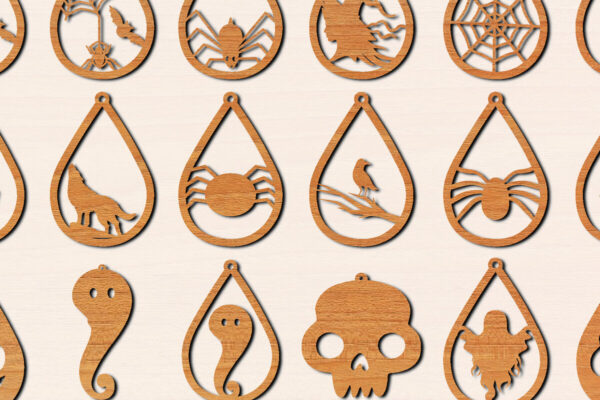Intra απο ξύλο plywood 3mm-4mm πάχος – Πακέτο με λέιζερ σκουλαρίκια Halloween Δίασταση 3×3 cm INTRAFABR-101414632