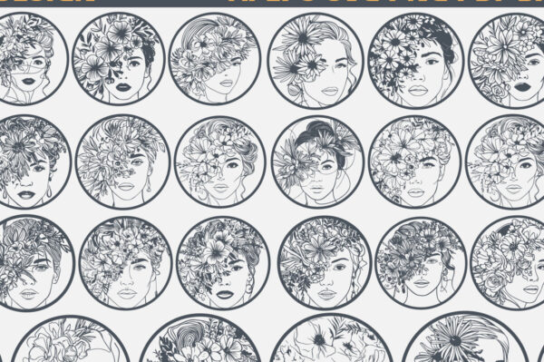 Intra απο ξύλο plywood 3mm-4mm πάχος – Πακέτο με φλοράλ γυναικείο πρόσωπο με λέιζερ Δίασταση 20×20 cm INTRAFABR-96833763
